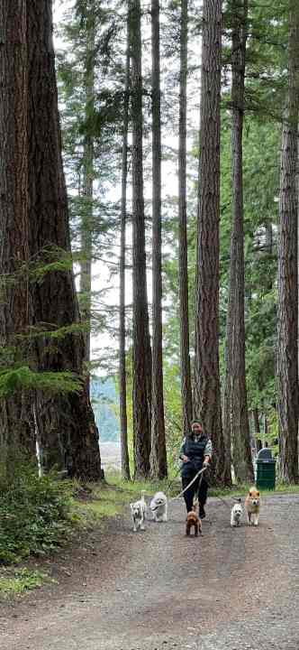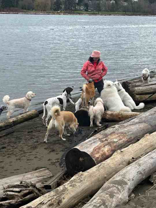 Our daily walk to McDonald beach is our every day event – rain or shine, starting at 10am. Pups have the best time rolling on the sand, chasing the waves, fetching a ball or a stick, and socializing with other dogs. It is our goal to provide them with the best experience for a happy and well exercised pup.